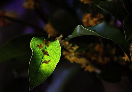 桂花香并不濃烈,卻很清幽,香飄萬里。在空氣里似有似無,讓人不停地探尋,探尋那最濃之處,直到最后才發現,原來最濃之處卻仍是清雅。也許這就說幾乎所有的人愛她的花香的原因,因為她不咄咄逼人,在無聲無息之中,潛入你的鼻息,讓你心平氣和的接受并喜歡。