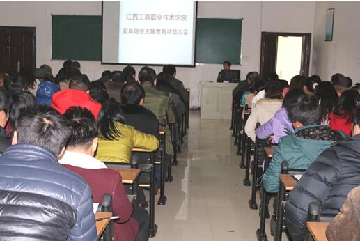 為了順利完成2015年各項工作目標,實現學院跨越式發展,進一步提高教職工的綜合素質,改進和加強廣大教工的組織紀律和工作作風,增強學院的凝聚力,向心力和創造力,做人民滿意的教師,辦人民滿意的學校,3月8日,江西工商職業技術學院組織召開了愛崗敬業主題教育活動全體教職工動員大會。