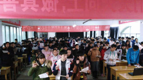 “我要忘記昨天的光榮和遺憾,我要把今天當做生命的最后一天,我要用自信驅(qū)趕黑暗,我要用勤奮書寫燦爛,我要讓今天成為不朽的紀念日,我要讓心中的夢想實現(xiàn),中考,我拼了!”3月9日下午,南昌現(xiàn)代外國語學校(迎賓校區(qū))2016屆中考百日沖刺動員大會在校圖書館三樓隆重召開,初三年級全體學生進行了宣誓。