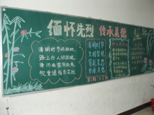 活動在年級組長的組織下,各班積極參與,參評的黑板報圍繞著清明節的起源、風俗習慣、傳統習俗、緬懷先烈、紅色故事等內容展開,圖文并茂,主題鮮明,內容充實,書寫規范,充分展現了學校師生積極向上的精神追求,營造了濃郁的文化氛圍。