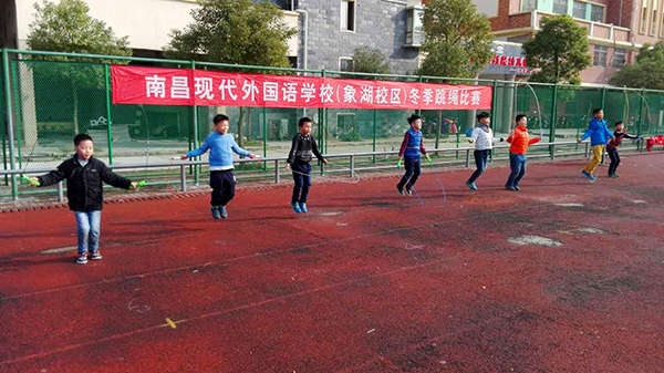 為了貫徹“健康第一”的指導(dǎo)思想,響應(yīng)國家“陽光體育”的號召,激發(fā)學(xué)生的體育興趣,提高學(xué)生的運動技術(shù)水平。讓學(xué)生形成新的健康觀念和終身體育意識,培養(yǎng)學(xué)生之間的團(tuán)結(jié)、合作精神與積極進(jìn)取精神,增強(qiáng)班級間的友誼與班級凝聚力,活躍校園文化生活。南昌現(xiàn)代外國語學(xué)校(象湖校區(qū))12月22日下午舉行了2—6年級學(xué)生冬季跳繩比賽。