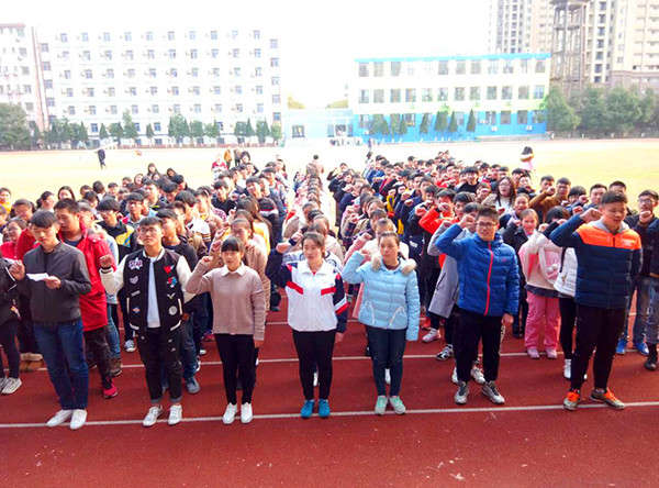 “我以青春的名義宣誓:堅定信念,不屈不撓,放飛青春的翅膀,滿懷豪情……” 嘹亮的吶喊聲在操場的空氣里震蕩,這是2017年2月27日下午南現外(迎賓校區)2017屆高三百日沖刺誓師大會的現場。本次大會由教務處徐成主任主持。
