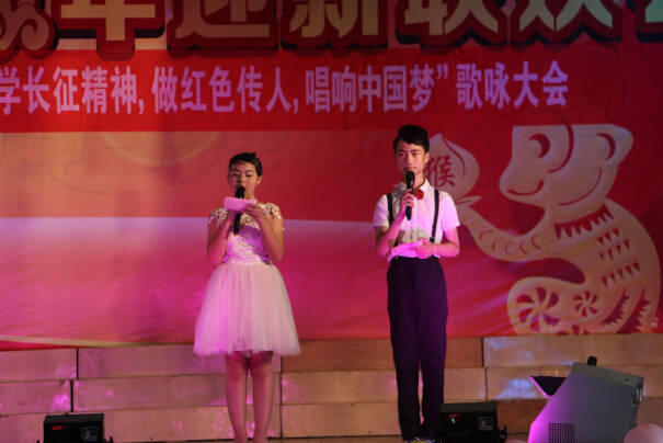 6月1日下午,小學部在演播大廳舉行了“學長征精神,做紅色傳人,唱響中國夢”歌詠大會。全體少先隊員在老師的帶領下有順序地登上舞臺,情緒激昂地表演了許多耳熟能詳的經典紅歌。