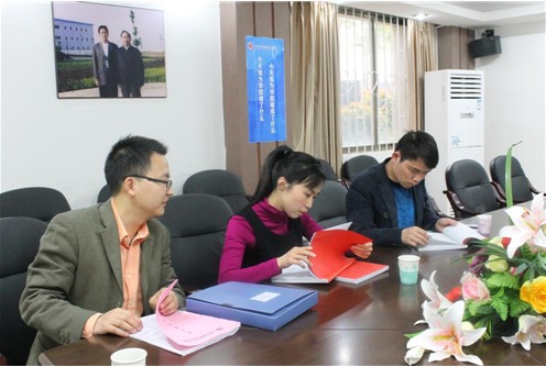 檢查小組與江西工商職業(yè)技術學院領導針對文宣工作進行交流